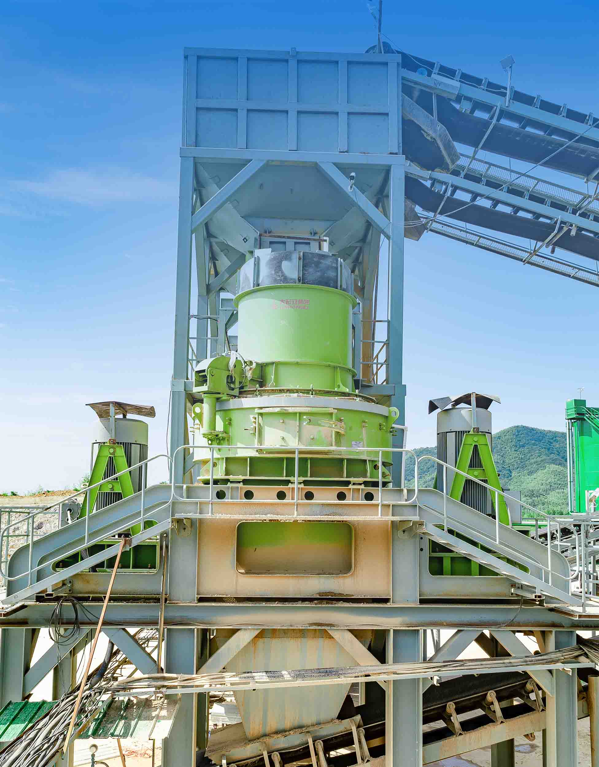 此條生產(chǎn)線(xiàn)以大鄂破機(jī)、單缸液壓圓錐破碎機(jī)、沖擊破制砂機(jī)、對(duì)輥機(jī)(高壓輥磨機(jī))等主機(jī)為核心,采用全自動(dòng)中央控制系統(tǒng),動(dòng)態(tài)調(diào)整成品砂石比例,甚至可實(shí)現(xiàn)全制砂生產(chǎn)